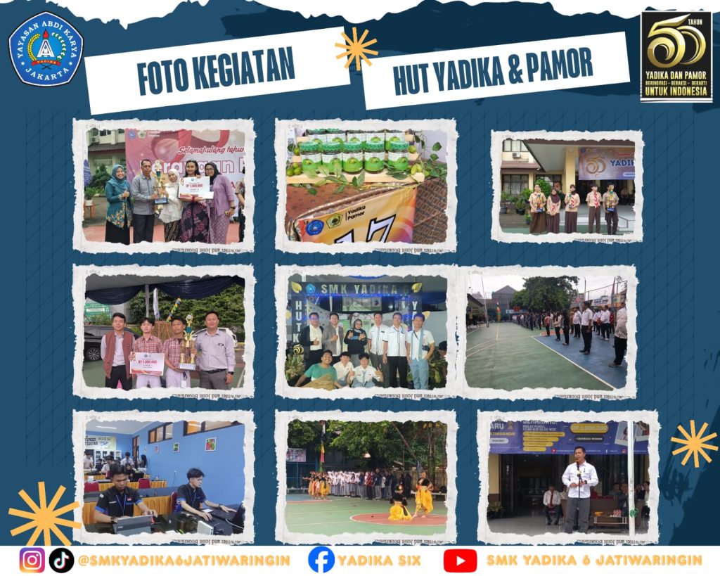 Dalam rangka memperingati HUT Yadika dan Pamor yang sudah menginjak 50 thn. SMK Yadika 6 berhasil memperoleh juara di berbagai bidang. *. Juara 1 LKS jurusan TKJ *. Juara harapan 5 LKS jurusan MPLB *. Juara 3 Produk Komersil yang dibuat oleh mata pelajaran kewirausahaan. Ketiga lomba ini diikuti dari sekolah yadika dan pamor di pulau Sumatera, Sulawesi dan Jawa. Semoga kedepannya SMK Yadika 6 dapat memperoleh banyak juara di berbagai bidang pada tahun selanjutnya. #smkterdekat #smkswastabekasiterbaik #sekolahterbaik #smkswastaterdekat #yadikaterbaik pendidikanyadika